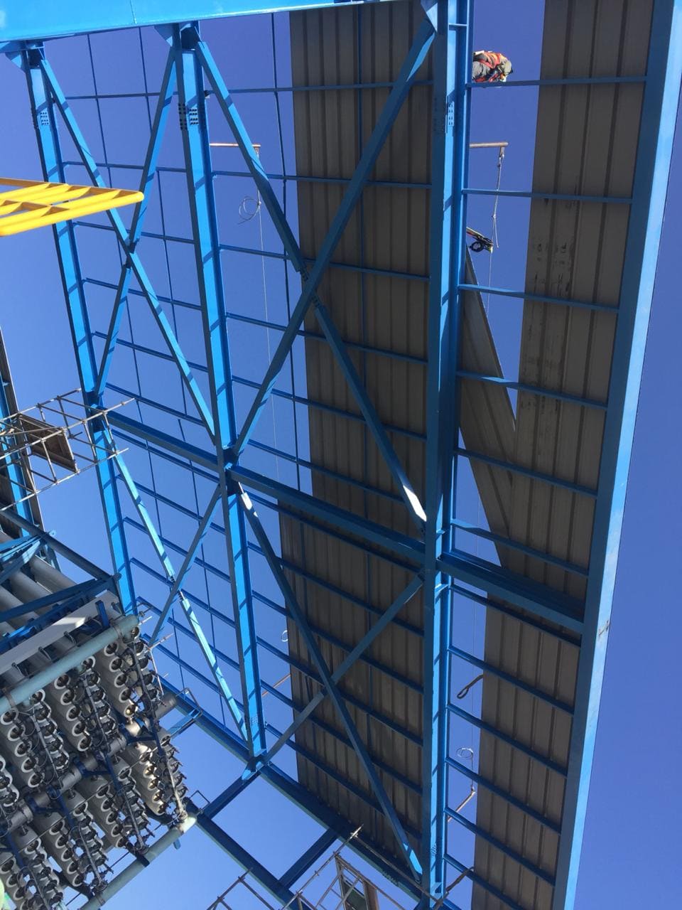 Diseñamos, fabricamos y montamos un galpón de 16 x 20 metros y 11 metros de altura para Aguas Antofagasta (ADASA), utilizando una estructura de acero al carbono. El galpón fue construido con un espesor de 25 mils en el esquema de pintura, especialmente diseñado para resistir la atmósfera salada de la región, garantizando durabilidad y protección contra la corrosión. Este proyecto aseguró una estructura robusta y confiable para las necesidades operativas de ADASA.